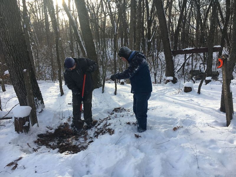 ![]() After riding up to the site in the Polaris, the team digs up the time capsule. |